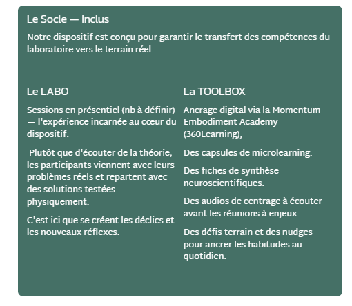 • LEADERSHIP DE SOI (Somatique) : Incarner la stabilité pour ne plus subir la pression.